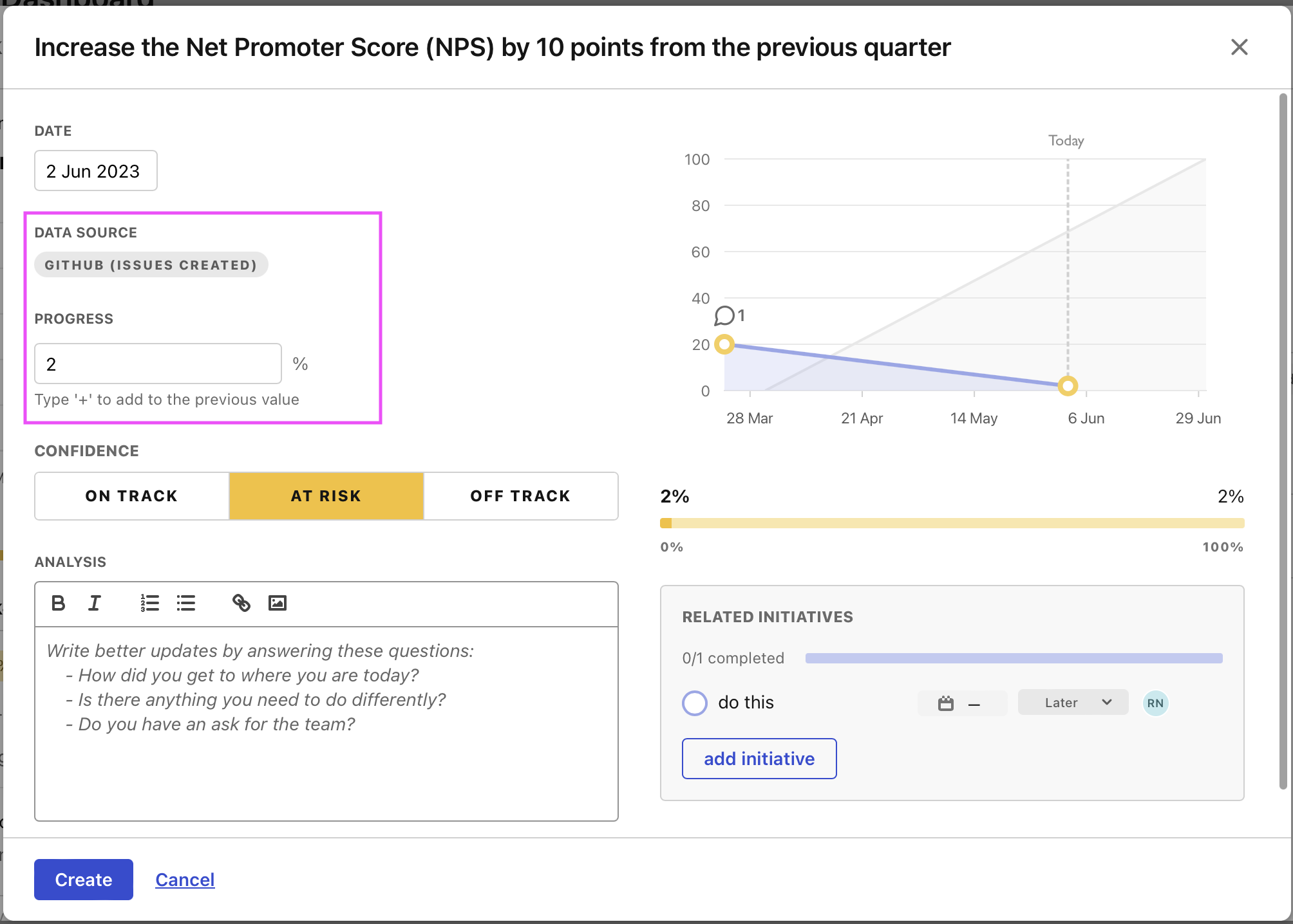 Step 1. Open up your edit panel of your outcome/KR