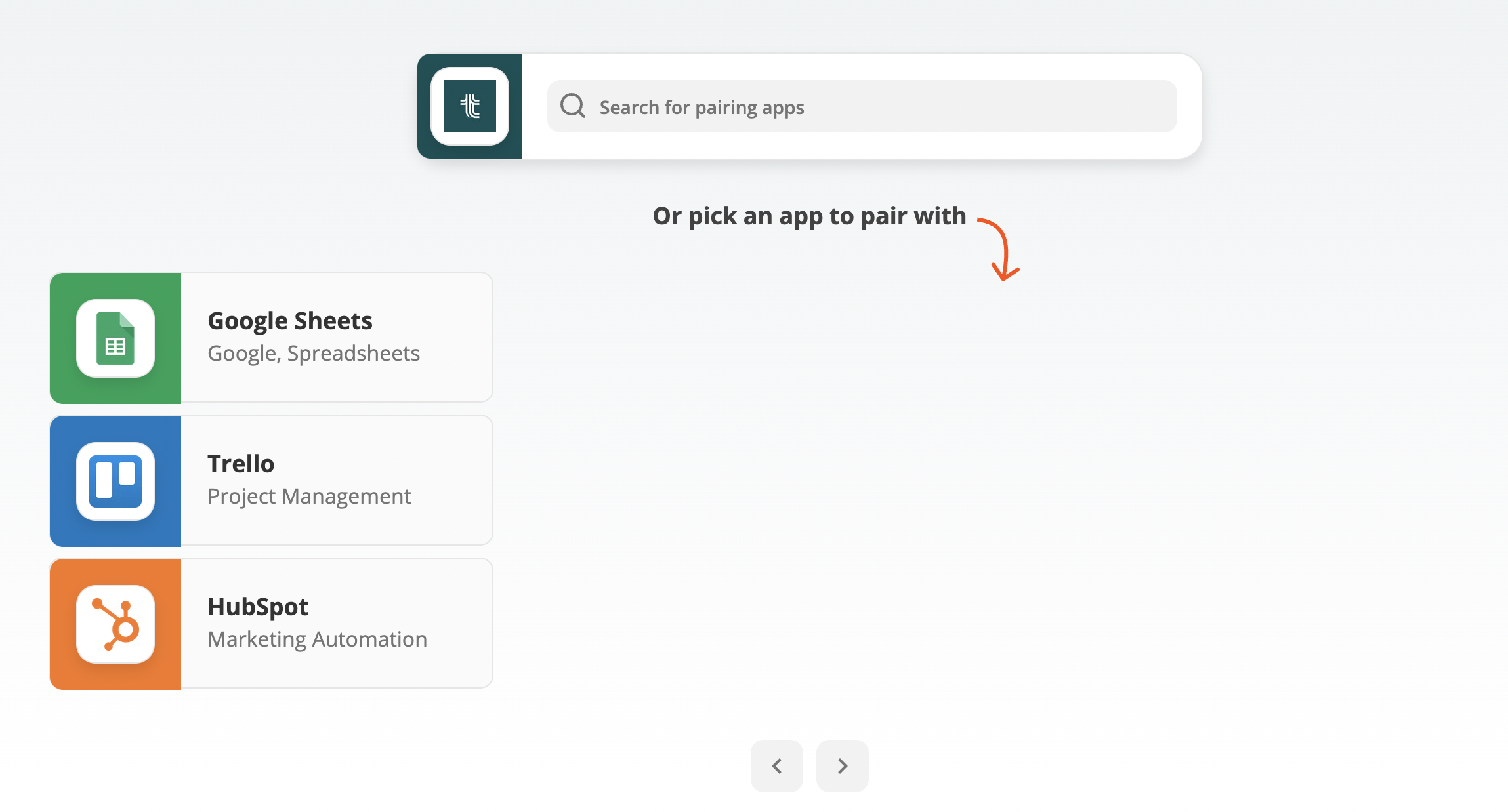 Search or pick an app to pair with Tability